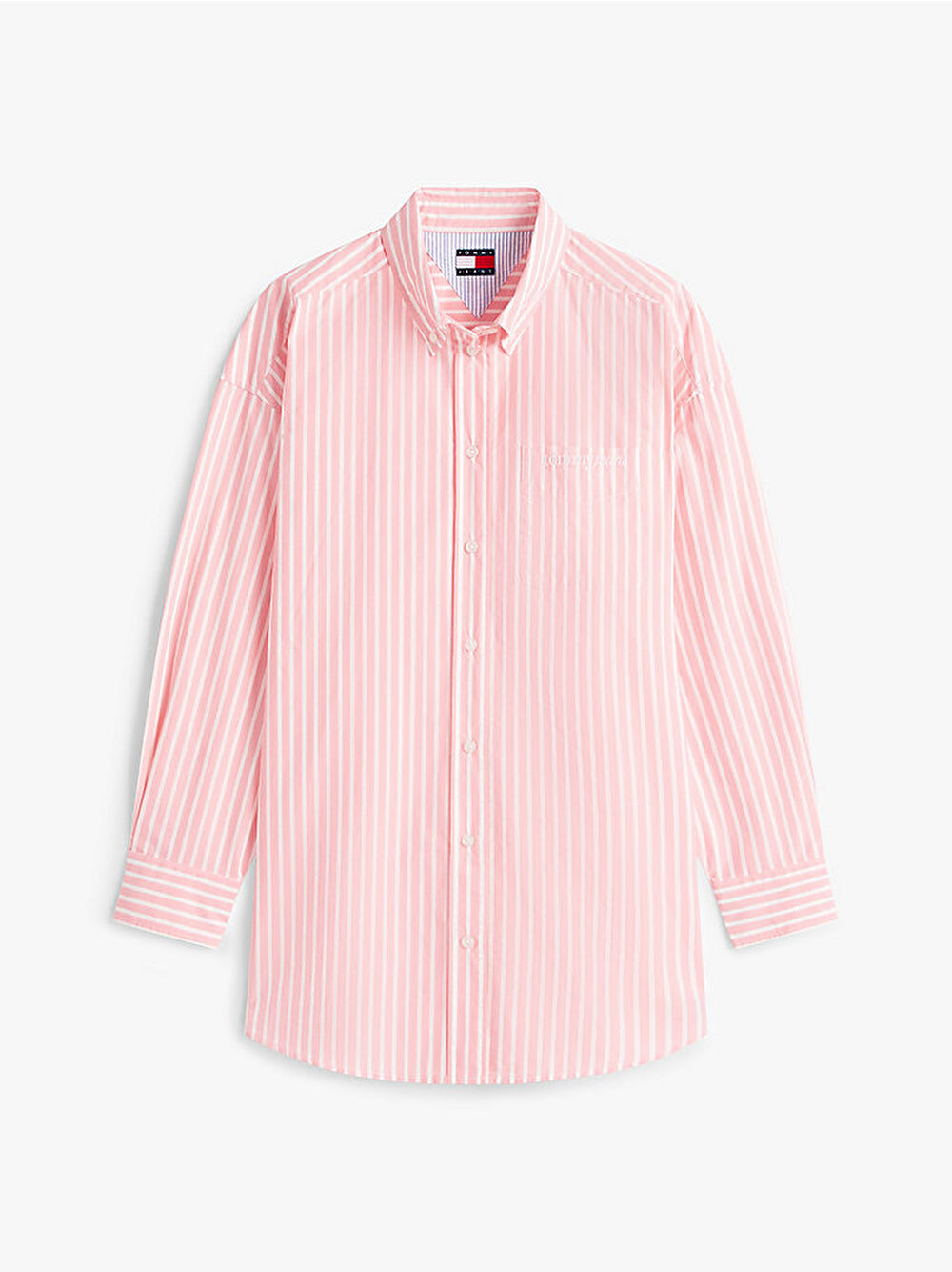 - Oversized kesimli ve serif el yazısı logo nakışlı bu pamuk karışımlı poplin gömlek ile görünümünüze kolej esintili bir enerji katın.
