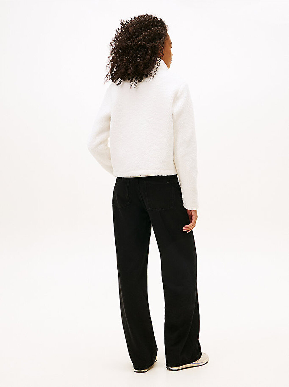 Yumuşak peluş-polar dokusu ve yüksek huni yakasıyla bu bayrak nakışlı fermuarlı ceketle sıcacık hissedin.