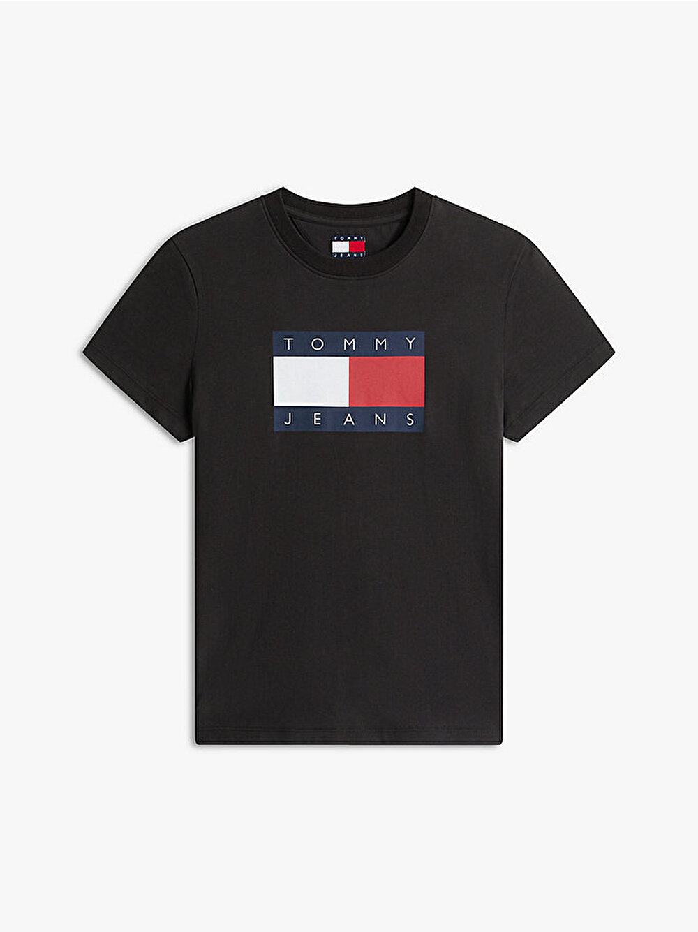 Bu saf pamuklu jarse tişört, standart kesimi ve ön kısmındaki Tommy bayrak rozetiyle gardırobun vazgeçilmez parçasıdır.