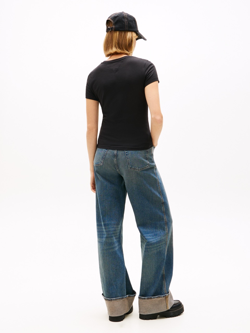 Tommy Jeans'ten kısa kollu tişört. Bu temel tişört, günlük giyim rotasyonunuza modern bir görünüm kazandıracak.