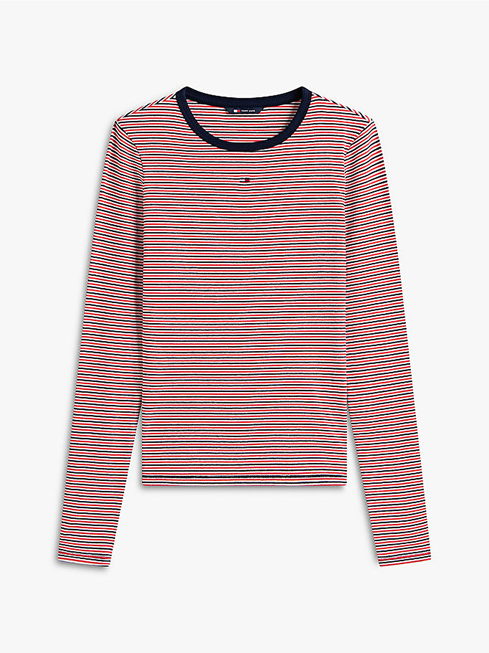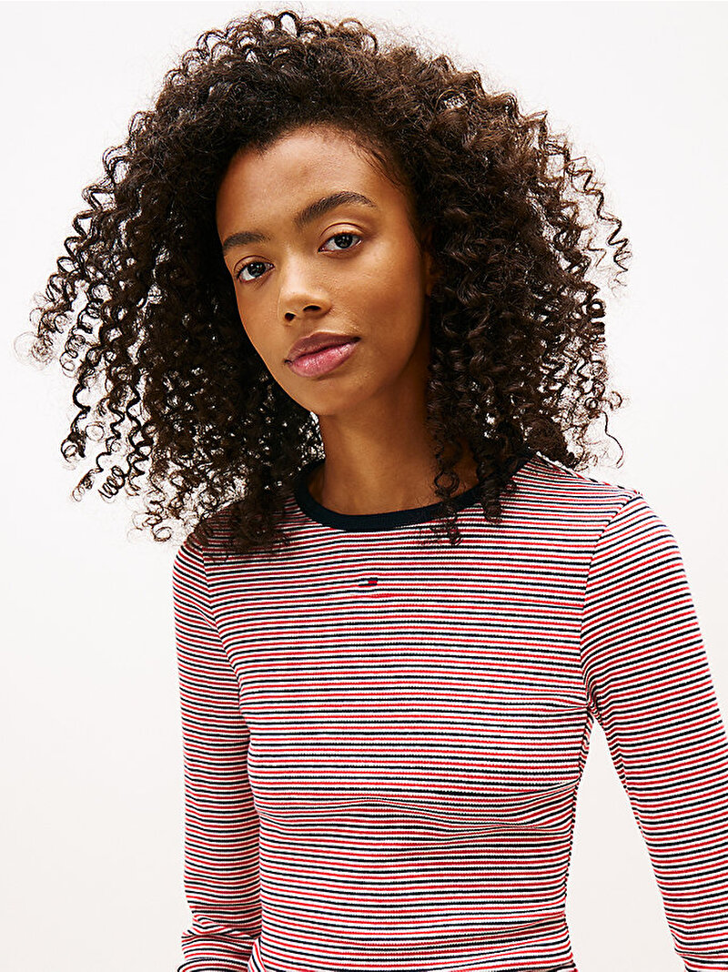 Vücudu saran dar kesimi, ribanalı dokusu ve düzgün bisiklet yakasıyla bu uzun kollu tişört ile temel parçalarınızı güncelleyin.