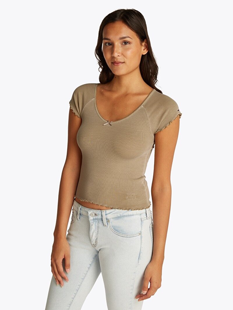 Tommy Jeans'ten kısa kollu tişört. Bu temel tişört, günlük giyim rotasyonunuza modern bir görünüm kazandıracak.