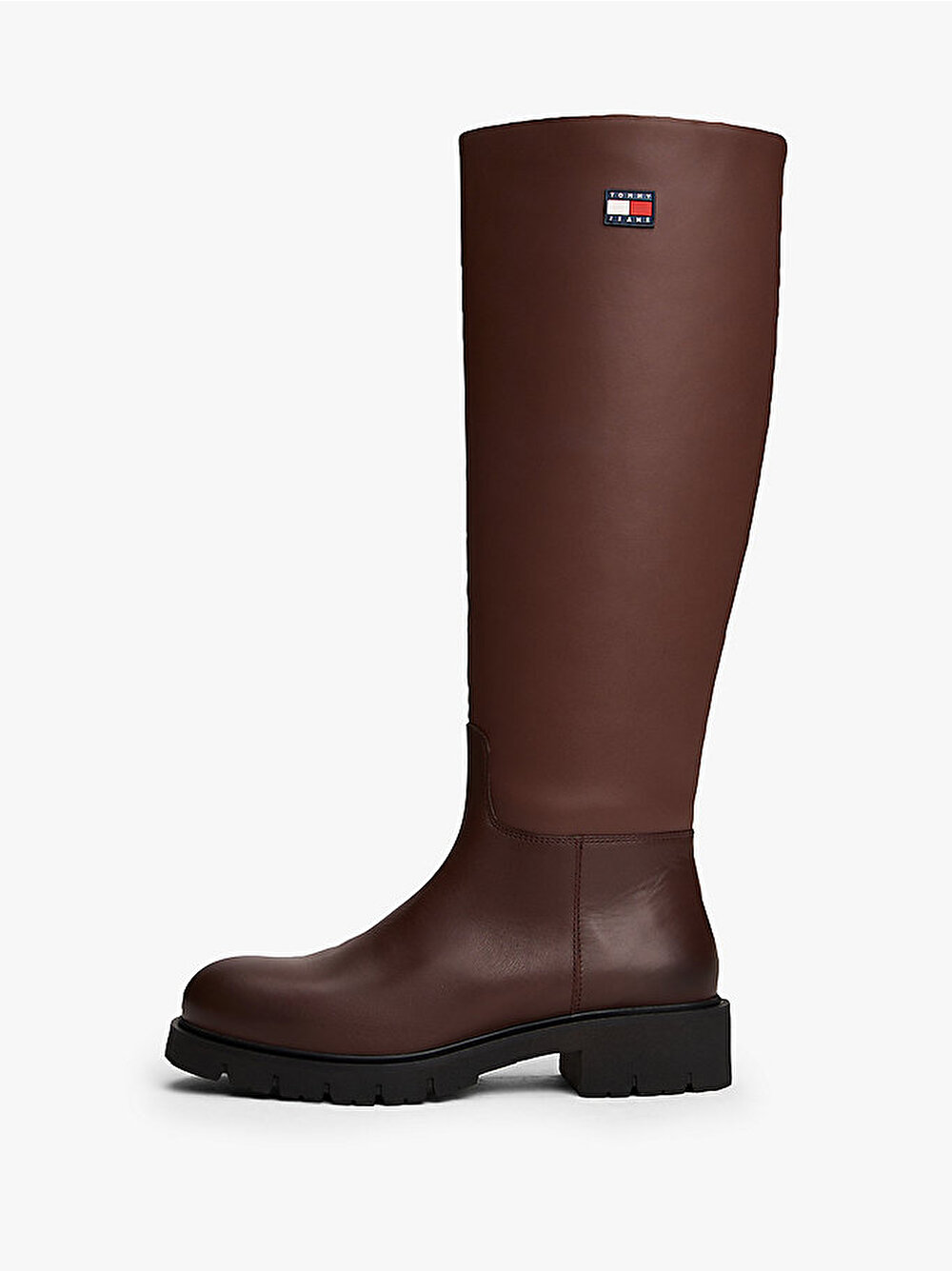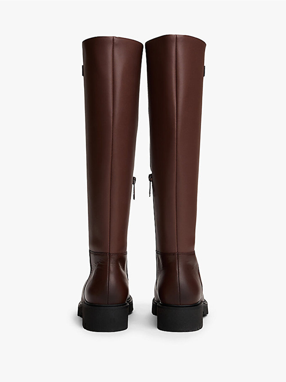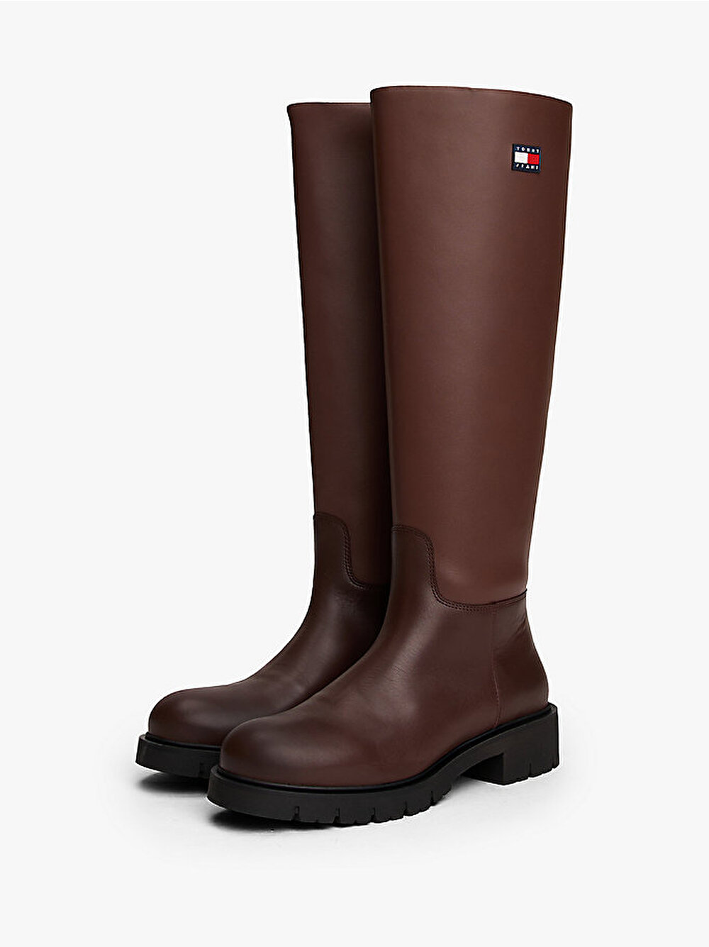 Kalın dişli dış tabanı ve yan fermuarıyla öne çıkan bu deri diz boyu botlarla dikkat çekici bir stil yaratın.