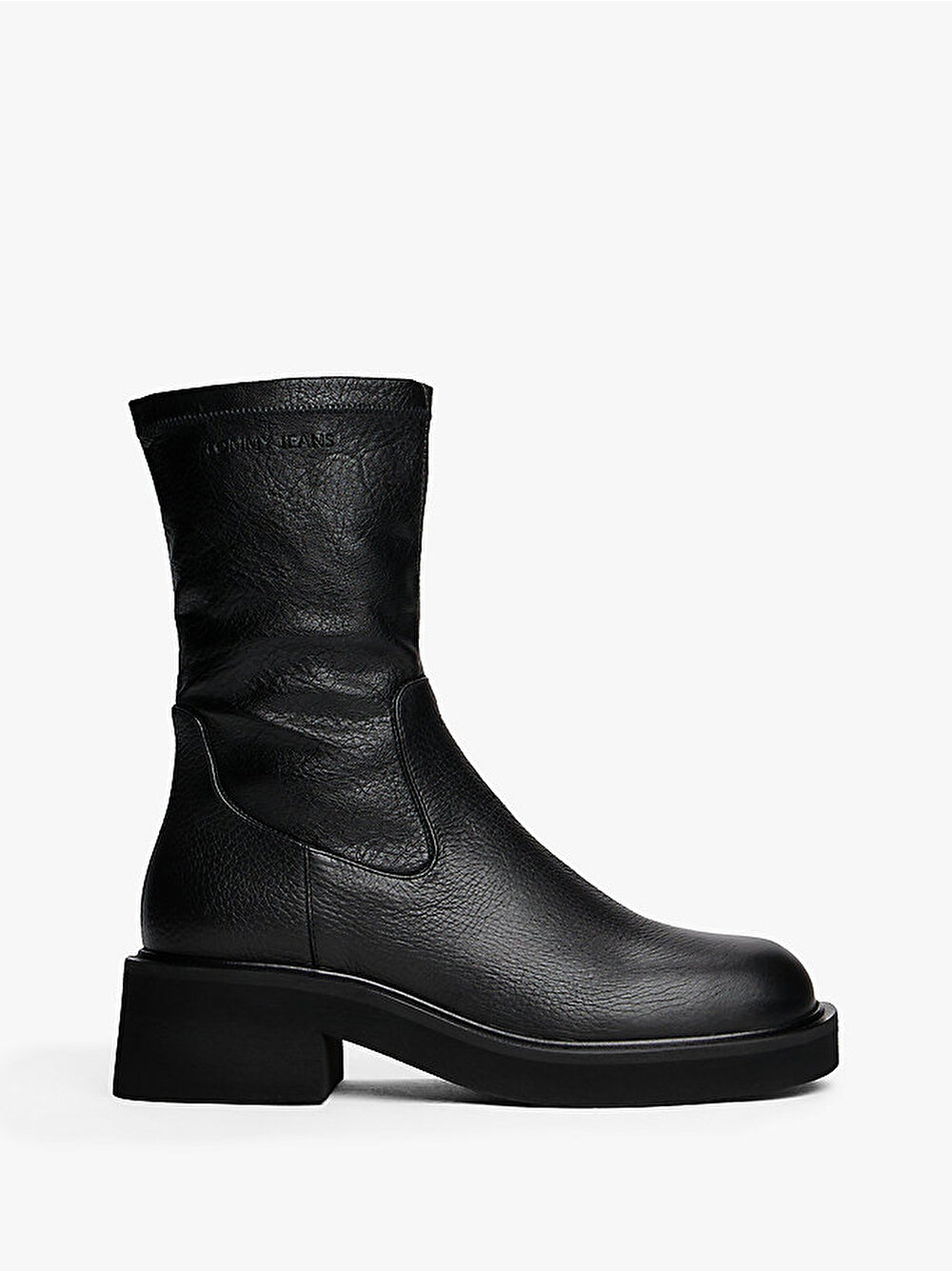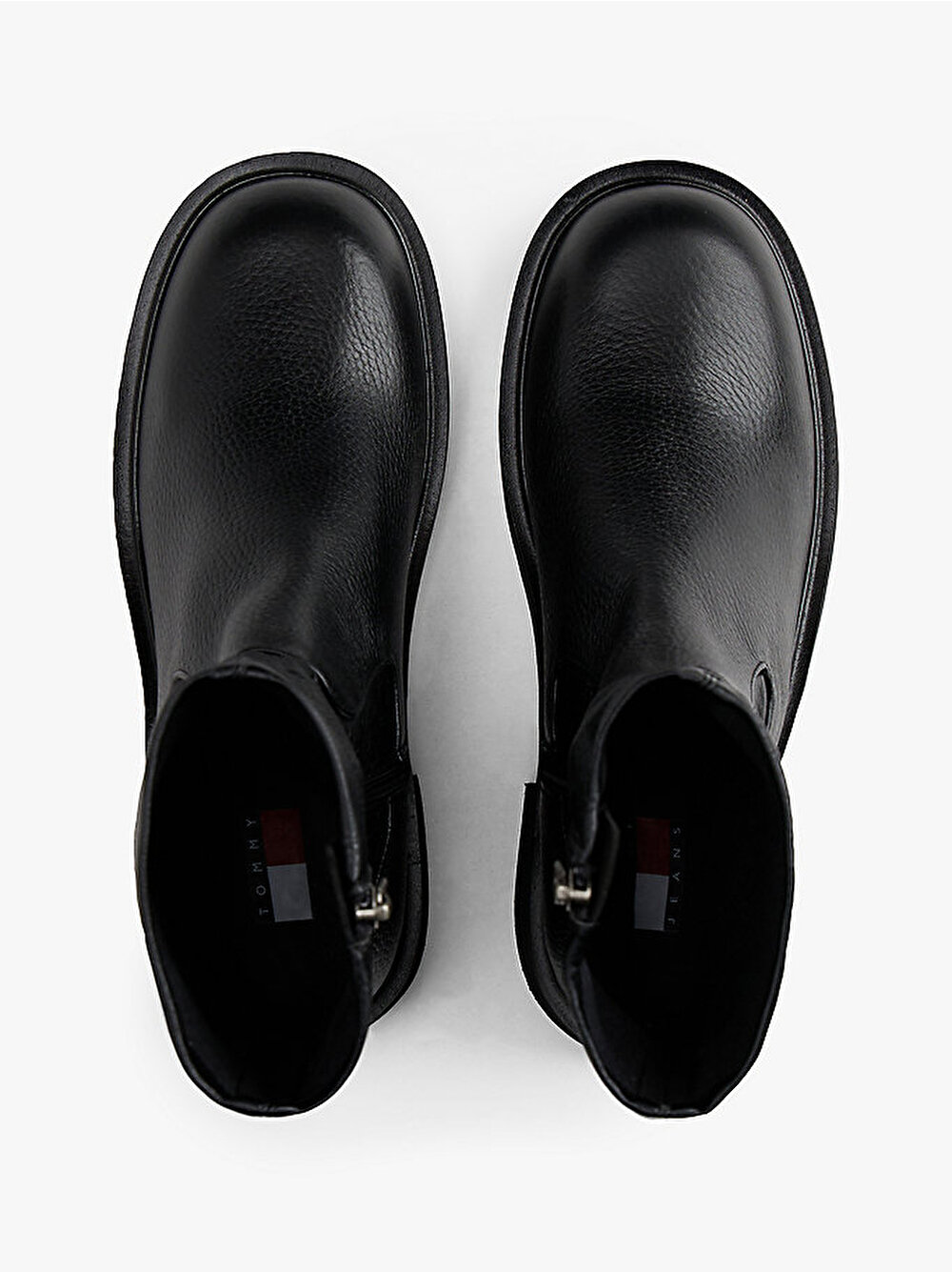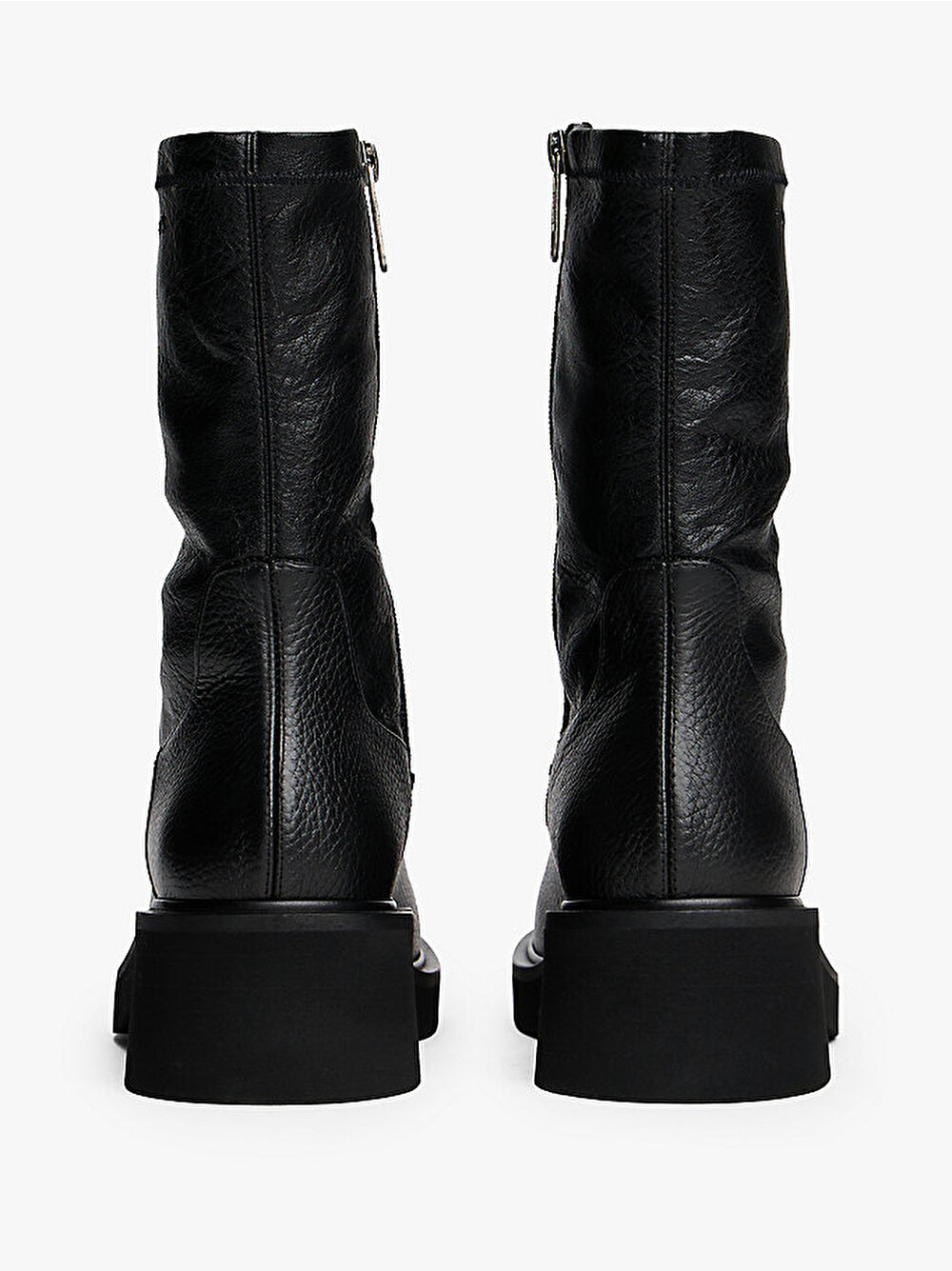 Yan fermuarları ve zarif kabartma logosuyla öne çıkan bu deri bot, sade ve şık bir görünüm sunar.
