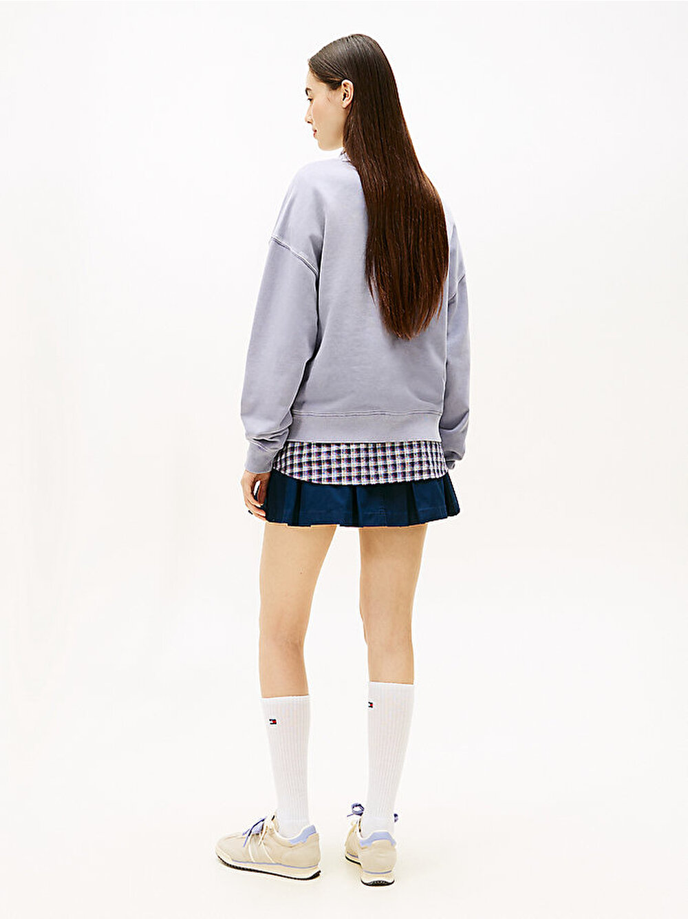 Bu sweatshirt, boxy modeli ve düşük omuzlarıyla rahat bir hava yaratırken, giysi boyalı saf pamuklu terry kumaşı yıpranmış bir görünüm kazandırır.
