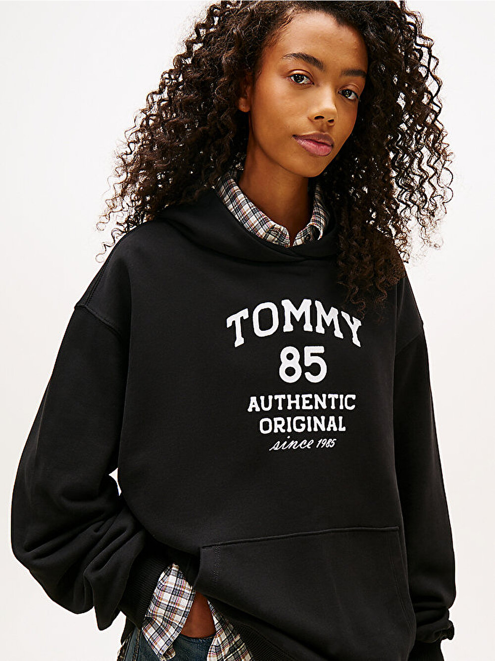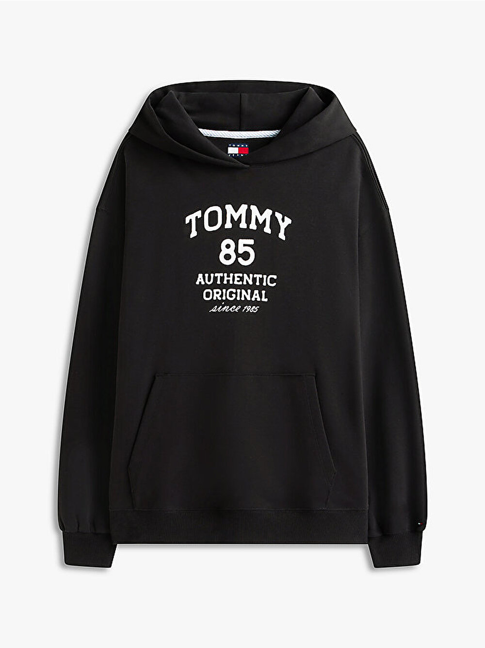 Kanguru cepli ve ön tarafında floklu logolu, rahat oversize kesimiyle tasarlanan bu kapüşonlu sweatshirt ile preppy stili benimseyin.