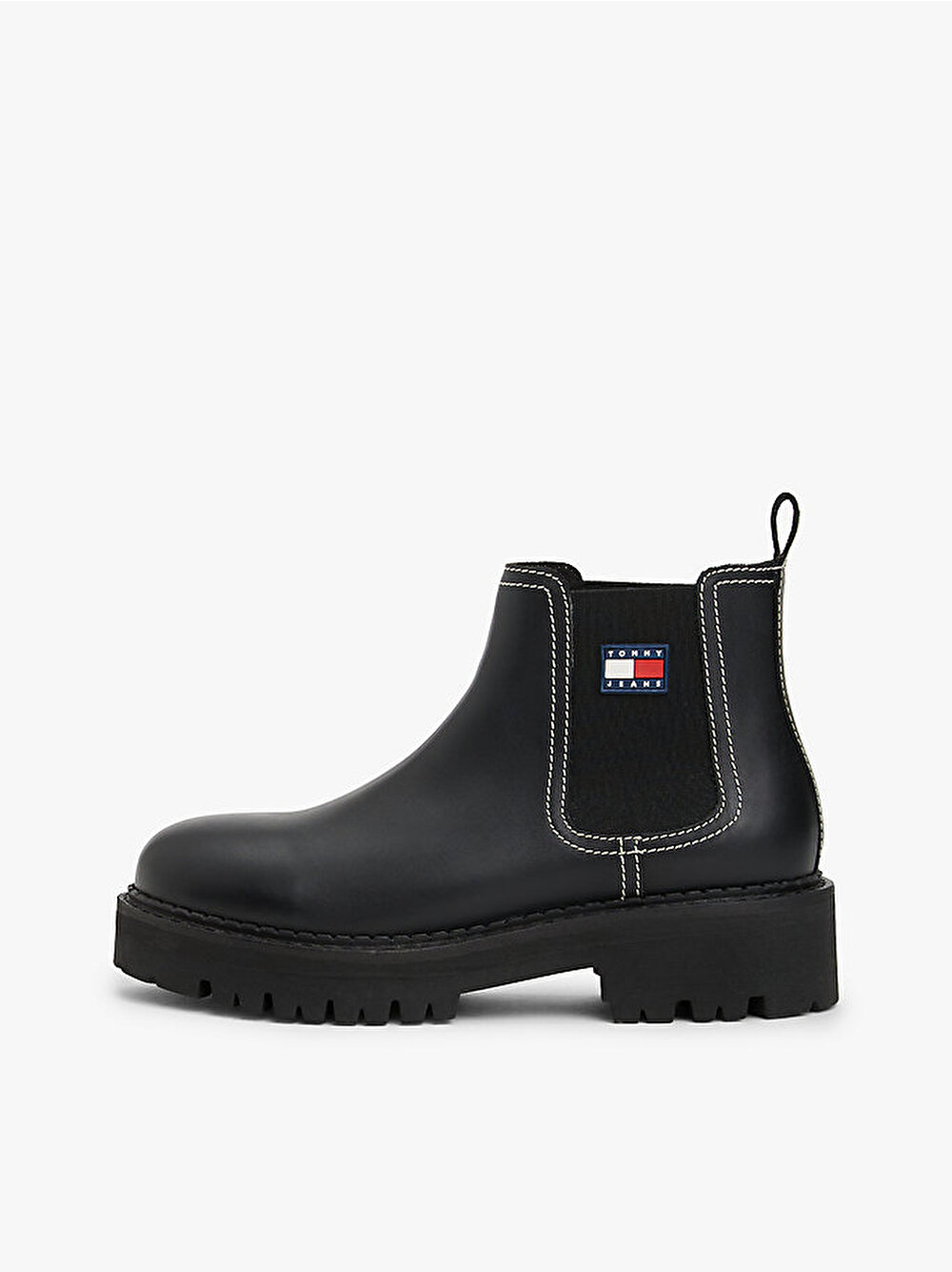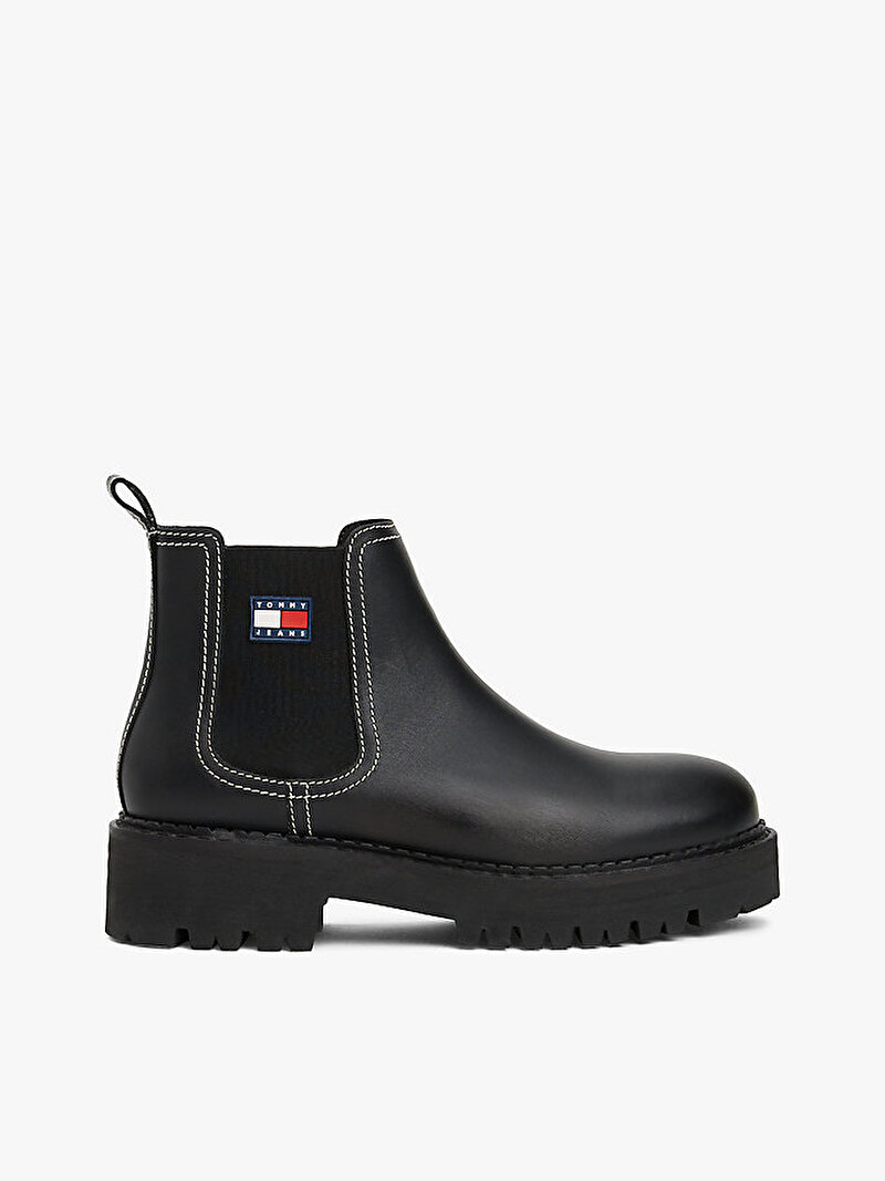 Kalın dişli tabanlı ve yan kısmında kauçuk Tommy arması bulunan bu deri Chelsea botlarla favori ayakkabınızı bir üst seviyeye taşıyın.