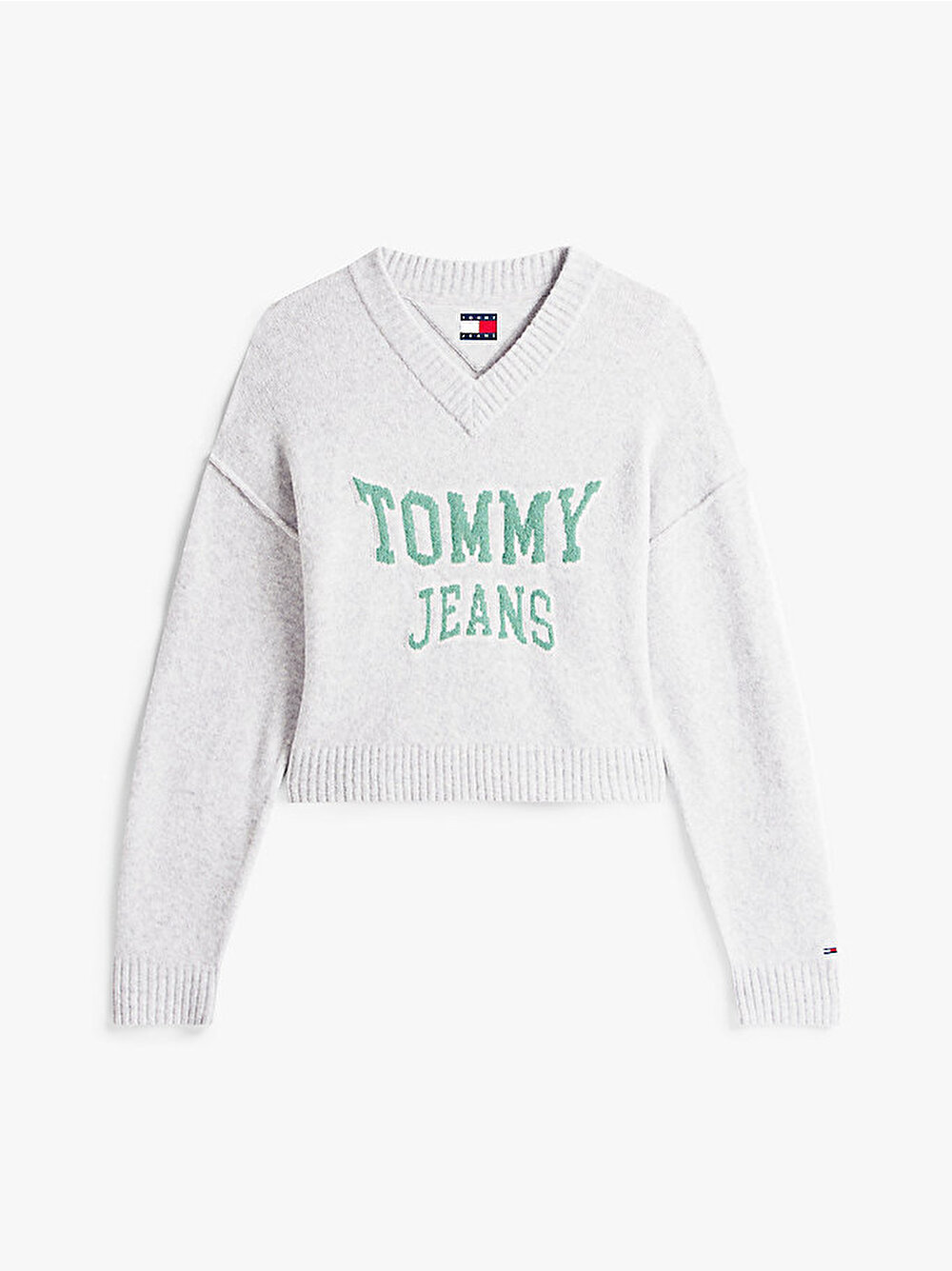 Ribana örgülü süslemeler ve ön tarafta cesur bir kontrast logo ile öne çıkan bu yün karışımlı kazak, tam anlamıyla bir üniversite havasına sahiptir.