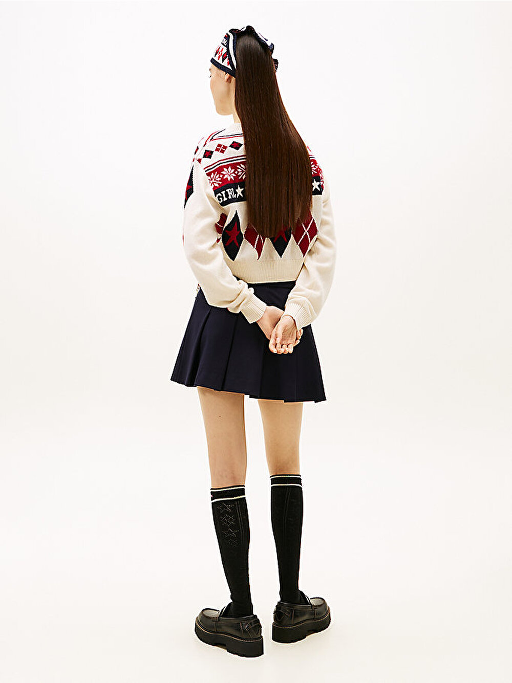 Bu kutu formundaki kazak ile sezonluk kombinlerinize nostaljik bir dokunuş katın; eğlenceli Fair Isle deseni ve intarsia logo detayına sahiptir.