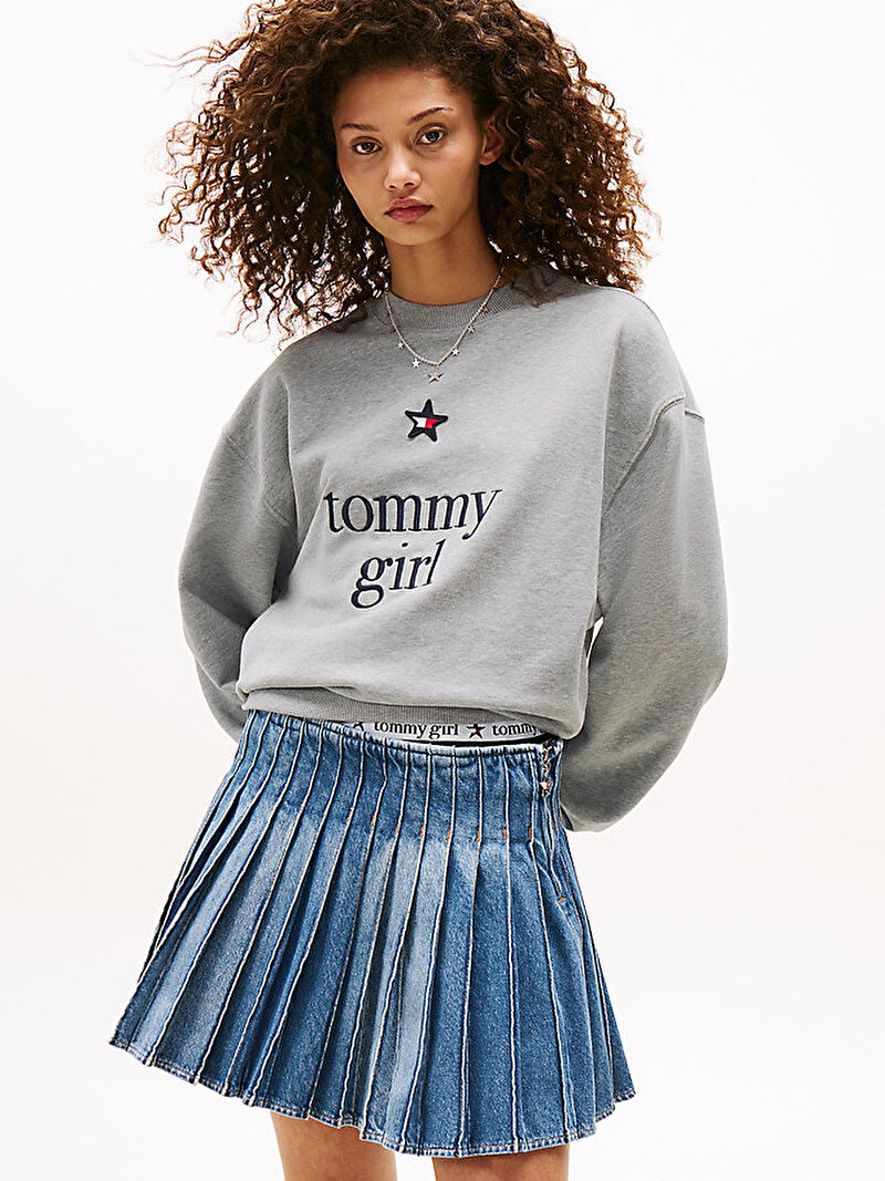 Saf pamuktan üretilen ve dikkat çekici Tommy Girl grafiğiyle tamamlanan bu rahat kesim sweatshirt ile rahat tarzını tanımla.
