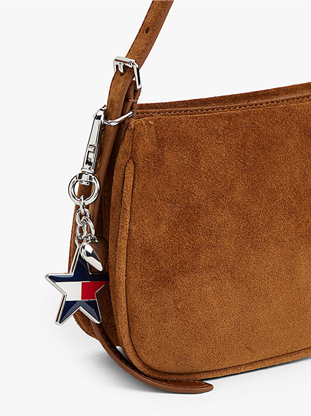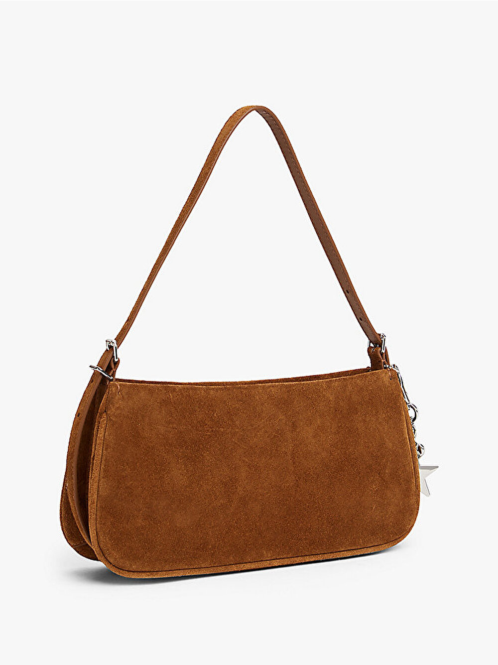 Günlükten geceye sorunsuz geçiş sağlayan bu omuz çantası, ipeksi süet ile tasarlanmış ve eğlenceli 90’lar esintili charm detaylarına sahip.