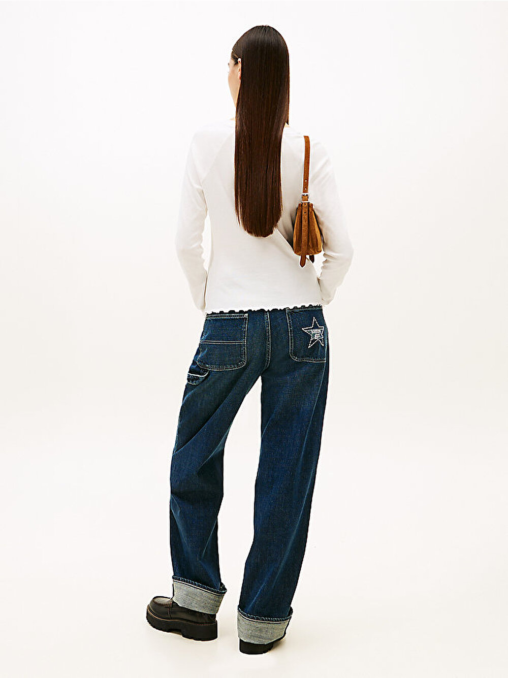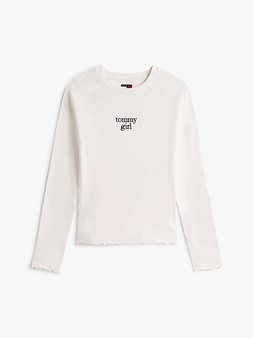 Y2K esintilerini bu slim-fit saf pamuk T-shirt ile yansıtın; tanınabilir logolu ve uzun kollarda ile etekte fırfır detaylıdır.