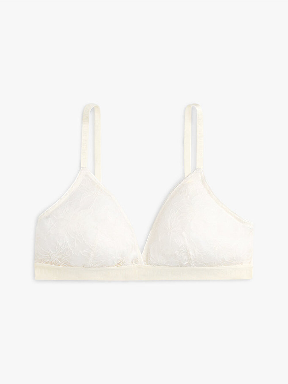Şeffaf çiçekli dantel tasarımıyla kadınsı bir zarafet sunan bu üçgen sütyen, sportif bir enerji veren tonal tekrar eden logolu göğüs altı bandıyla tamamlanıyor.
