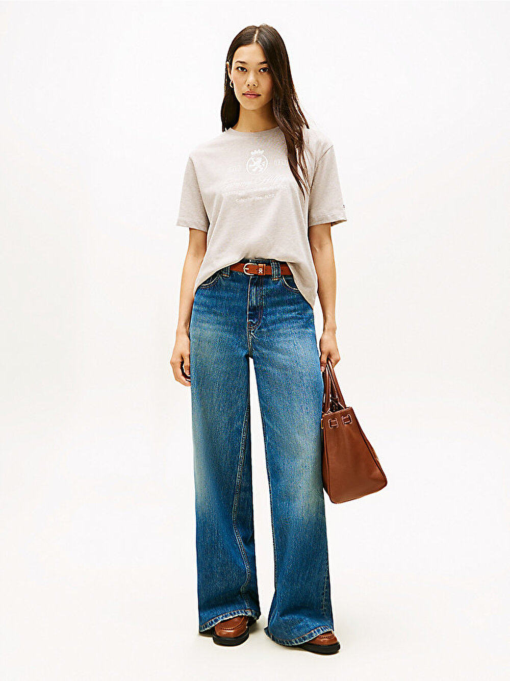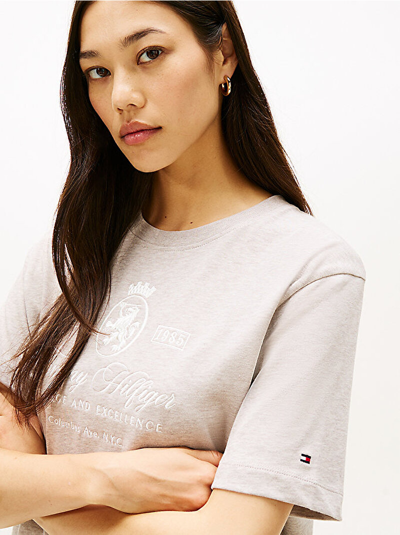 Rahat kesimi ve nakışlı arma detayıyla bu saf pamuklu tişört, size rahat ve kolej stili bir görünüm sağlar.