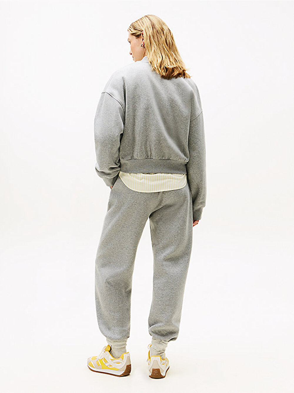Pamuk karışımlı esnek polar kumaştan üretilen ve üniversite armasını andıran özel markalama ile tamamlanan bu rahat kesim bomber hırka ile kolej stilini yansıtın.