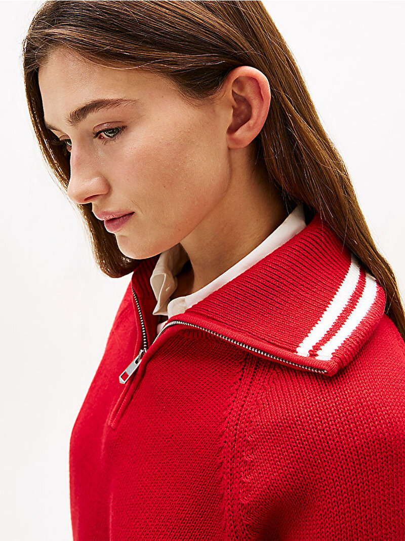 - Kolej stilinden ilham alan çizgili detaylara sahip, saf pamuktan relaxed fit kesimde örülen bu lüks kazak, katmanlı giyim için şık bir tercihtir.