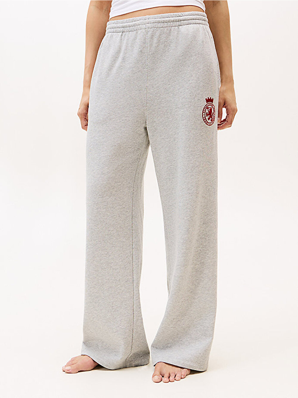 Elastik bir bel ve cesur TH arma nakışıyla tasarlanan bu geniş paçalı jogger pantolon ile ev giyiminizin vazgeçilmezlerine üniversite havası katın.