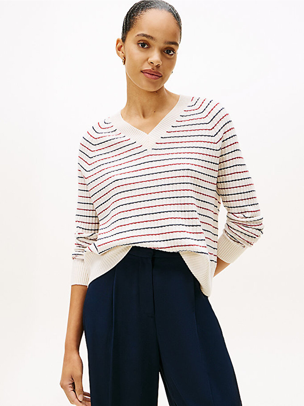 Zamansız bir kablo örgü ile birinci sınıf yün ve kaşmir karışımından üretilen bu V yakalı süveter ile zahmetsizce lüks giyinmenin ustası olun.