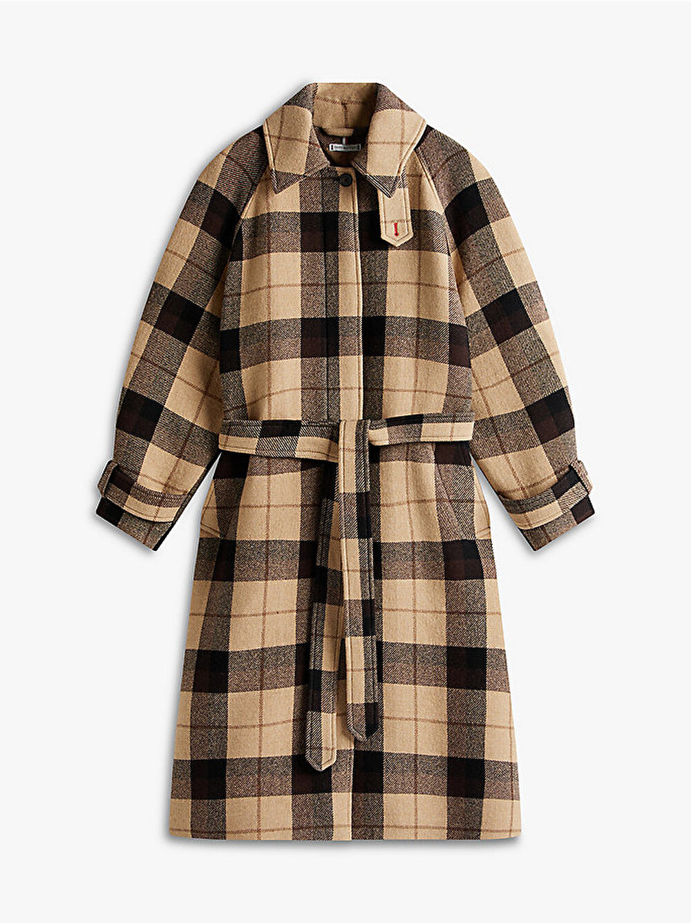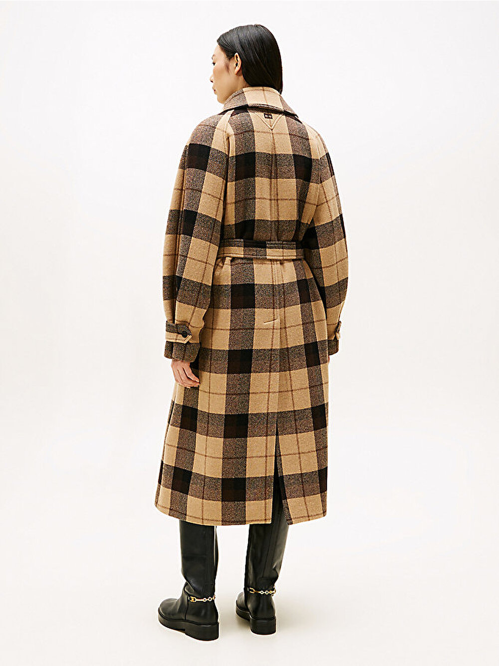 kadın wool check kemerli kaban