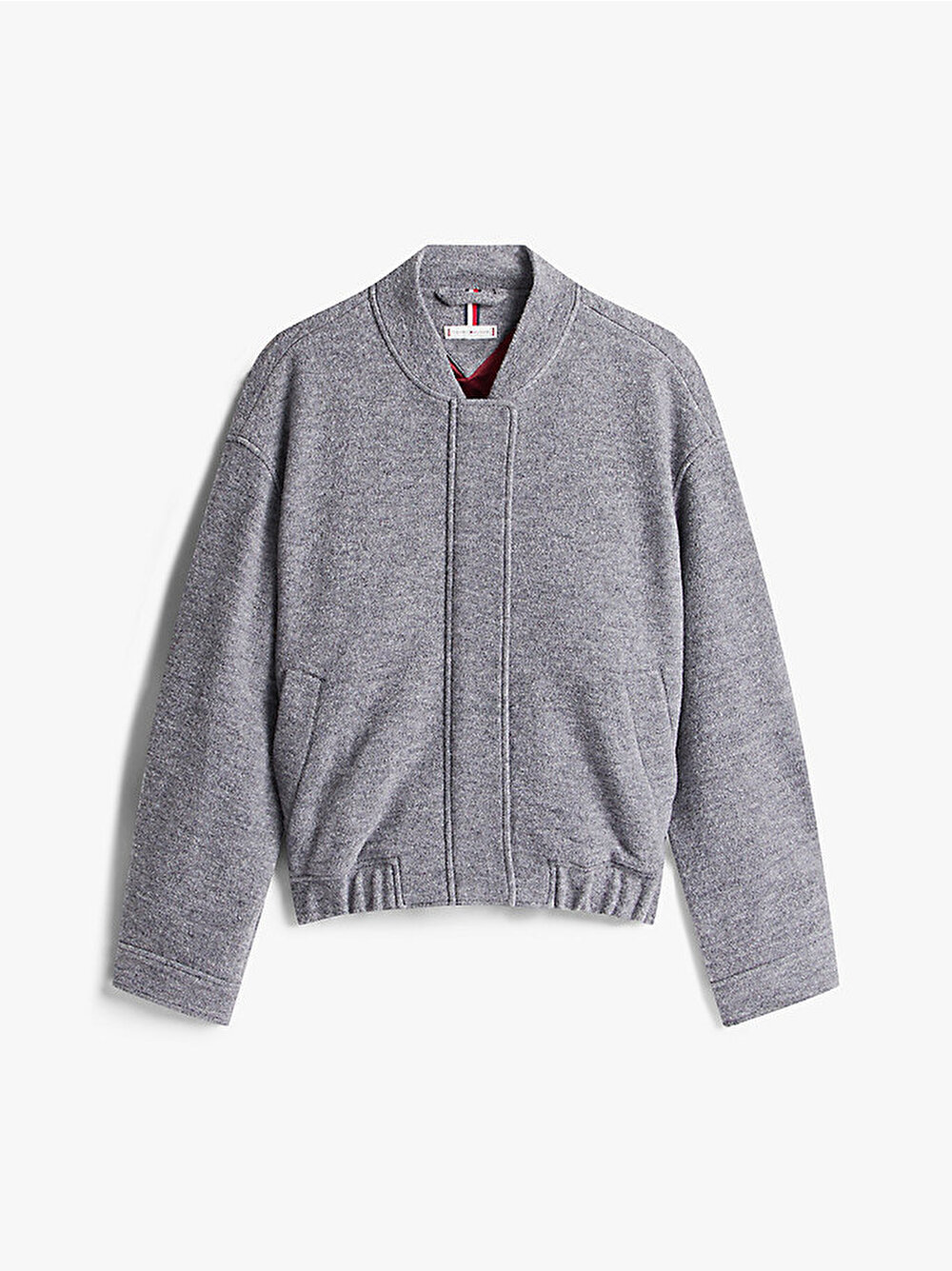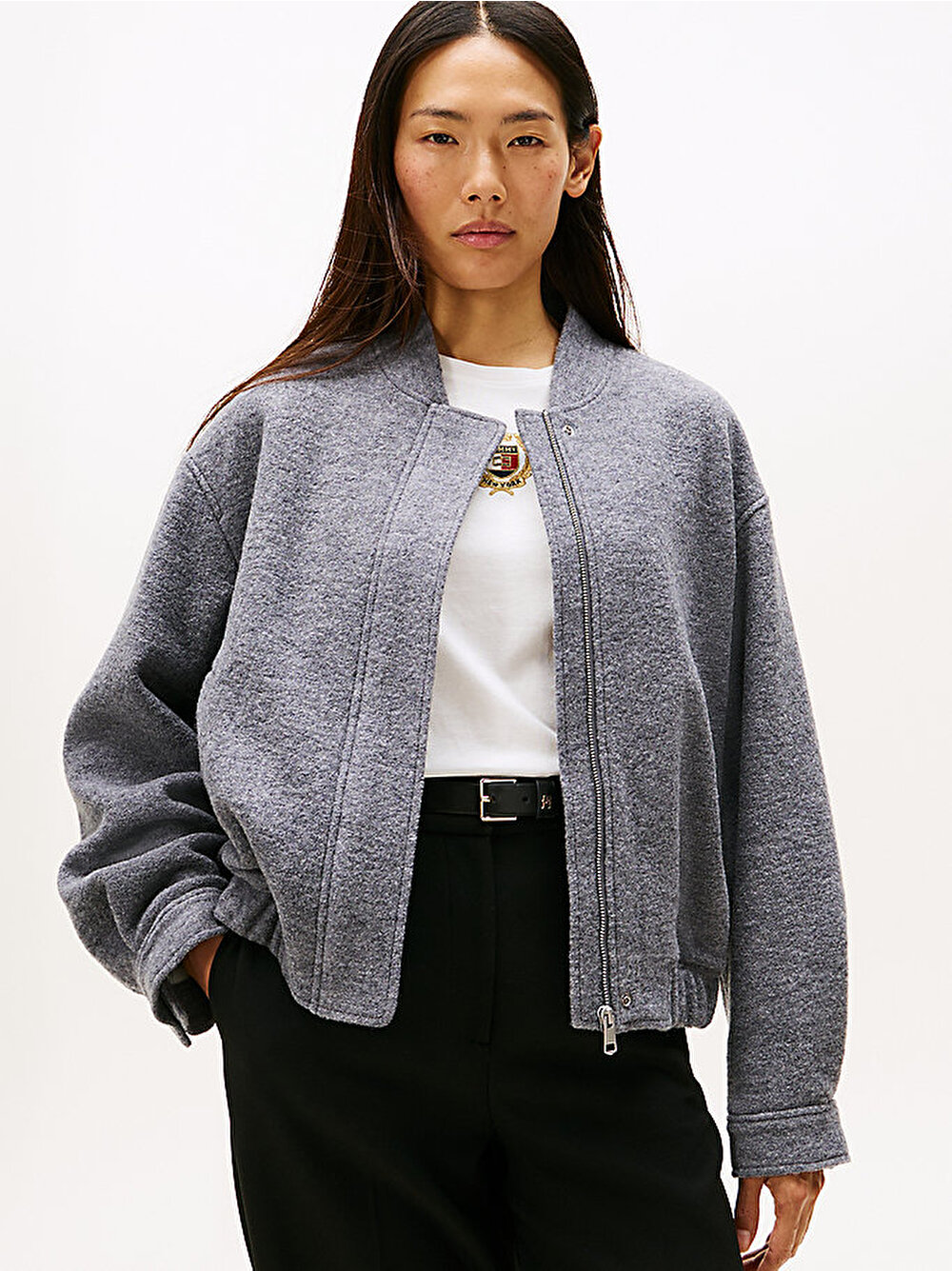 Dokunsal bir his ve üstün bir dokunuş için sıcak, dokulu yün karışımından yapılmış bu şık bomber ceketle katmanlı giyim sezonunu kucaklayın.
