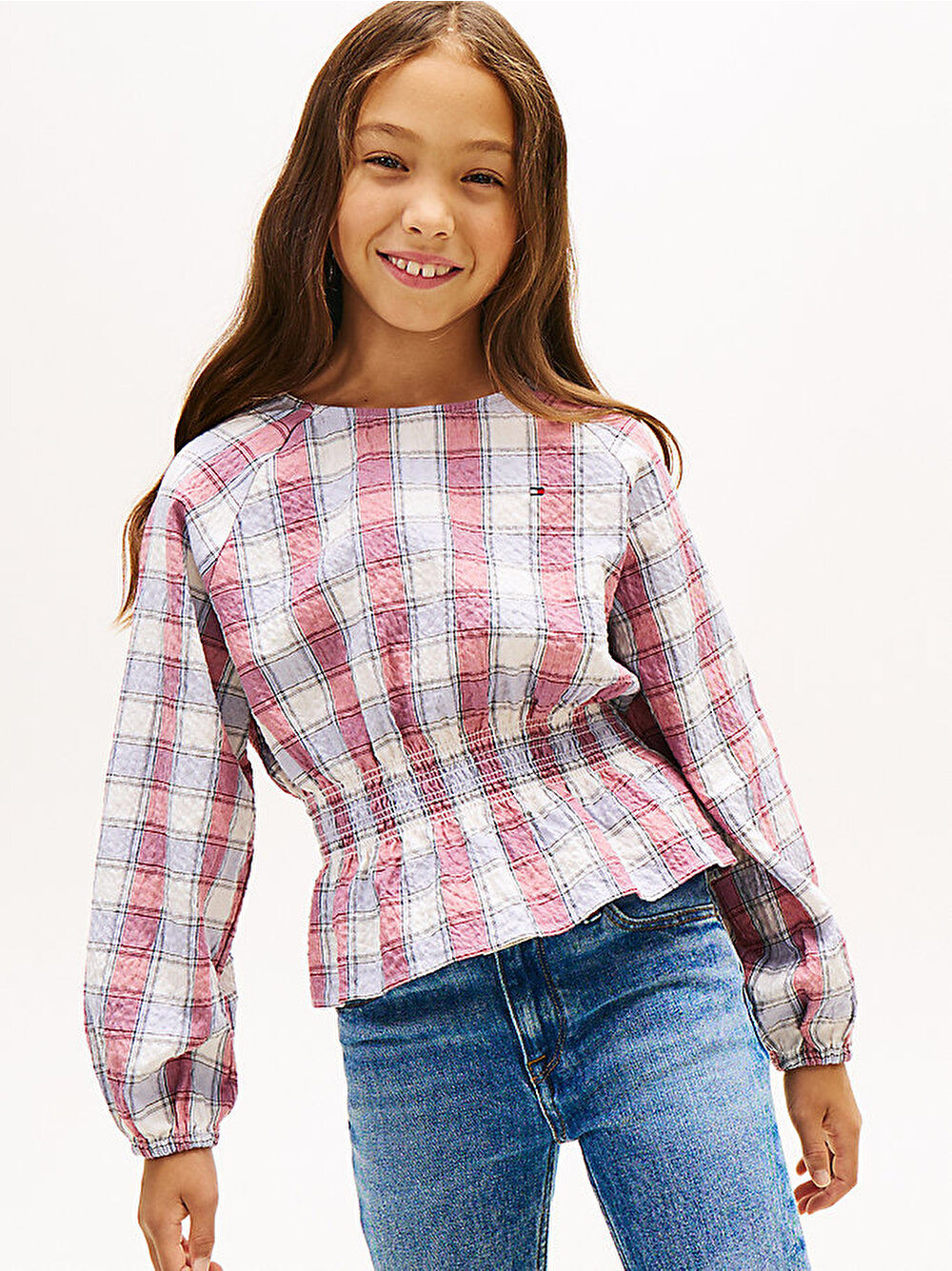 kız çocuk check smock blouse gömlek
