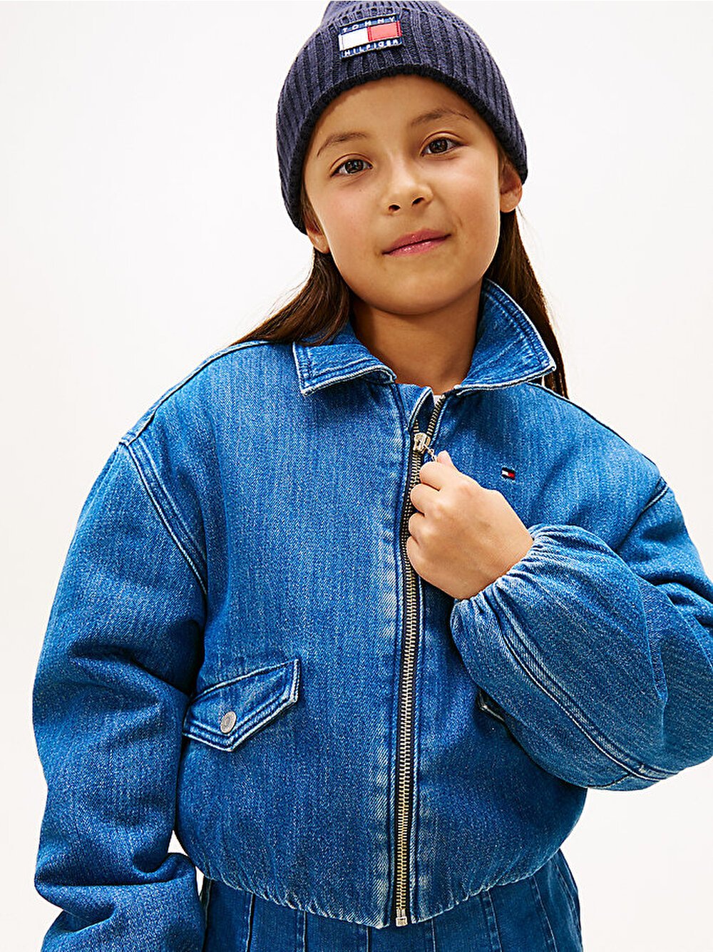 Boxy fit kesim bu denim bomber cekete retro bir çekicilik katarken, sırtındaki logo nakışı ise imza bir stil sunuyor.