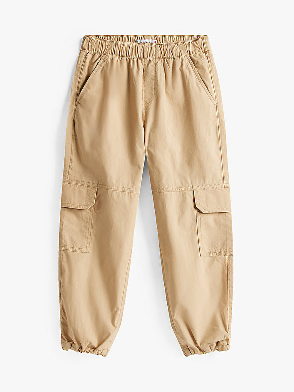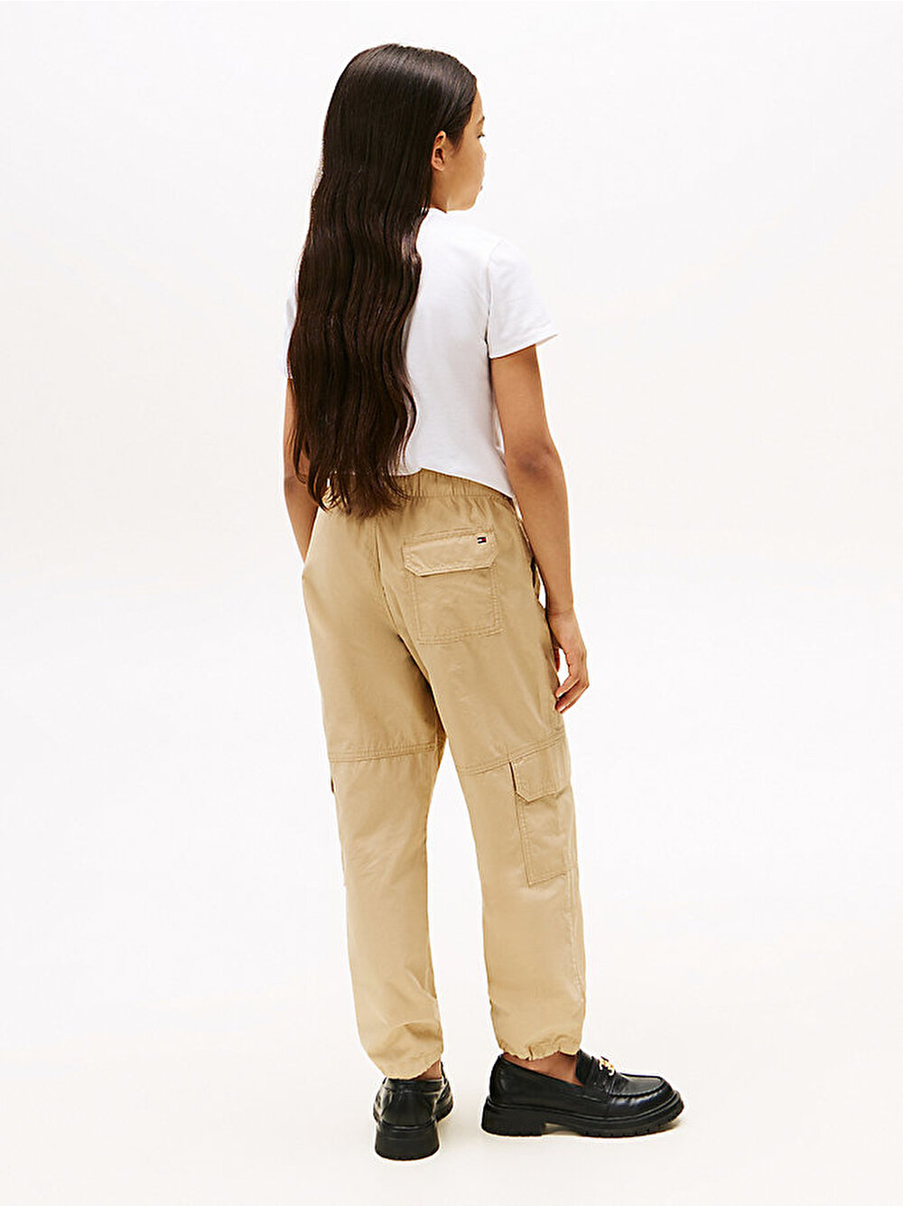 Lastikli beli ve kullanışlı kargo cepleriyle bu bol kesim pamuklu pantolon, rahat günler için ideal bir seçimdir.