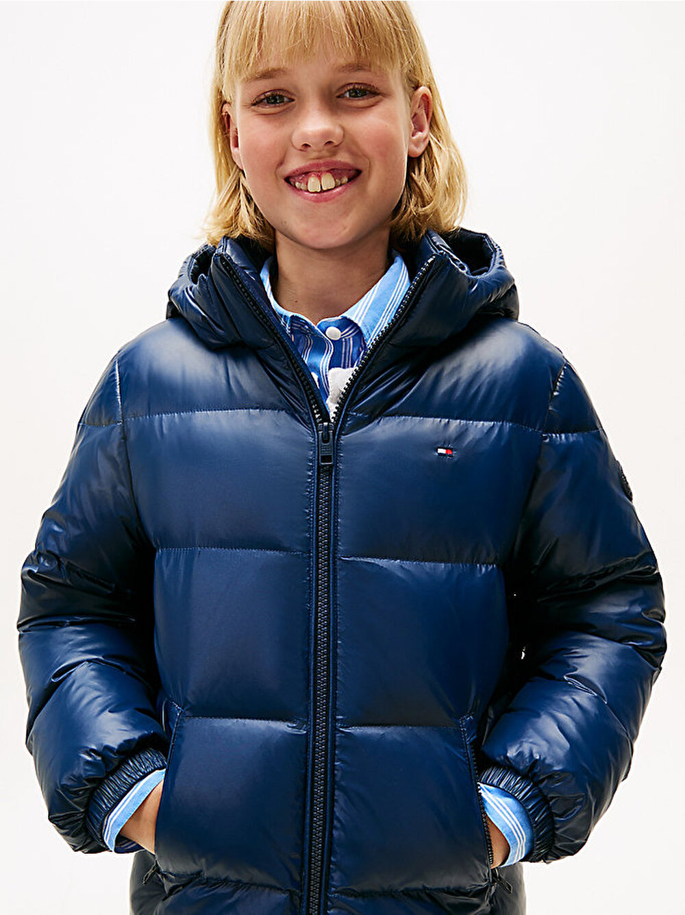 Geniş kapüşon ve lastikli manşetleriyle donatılmış bu sıcak tutan kaz tüyü mont, serin günlerde vazgeçilmeziniz olacak.