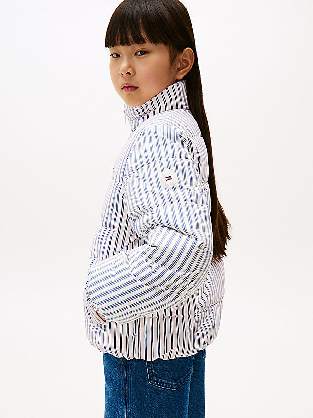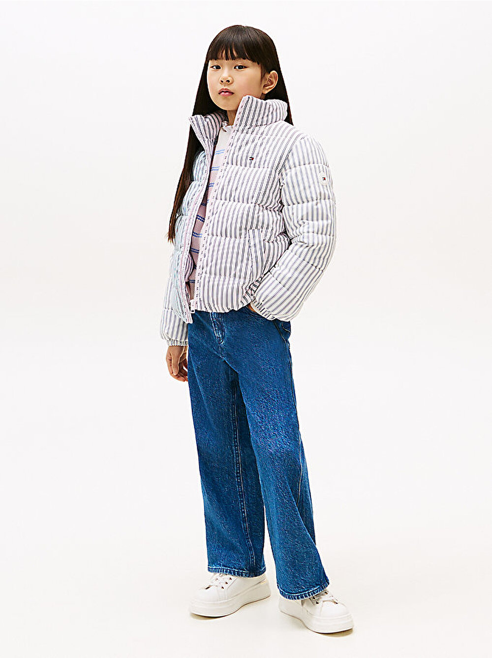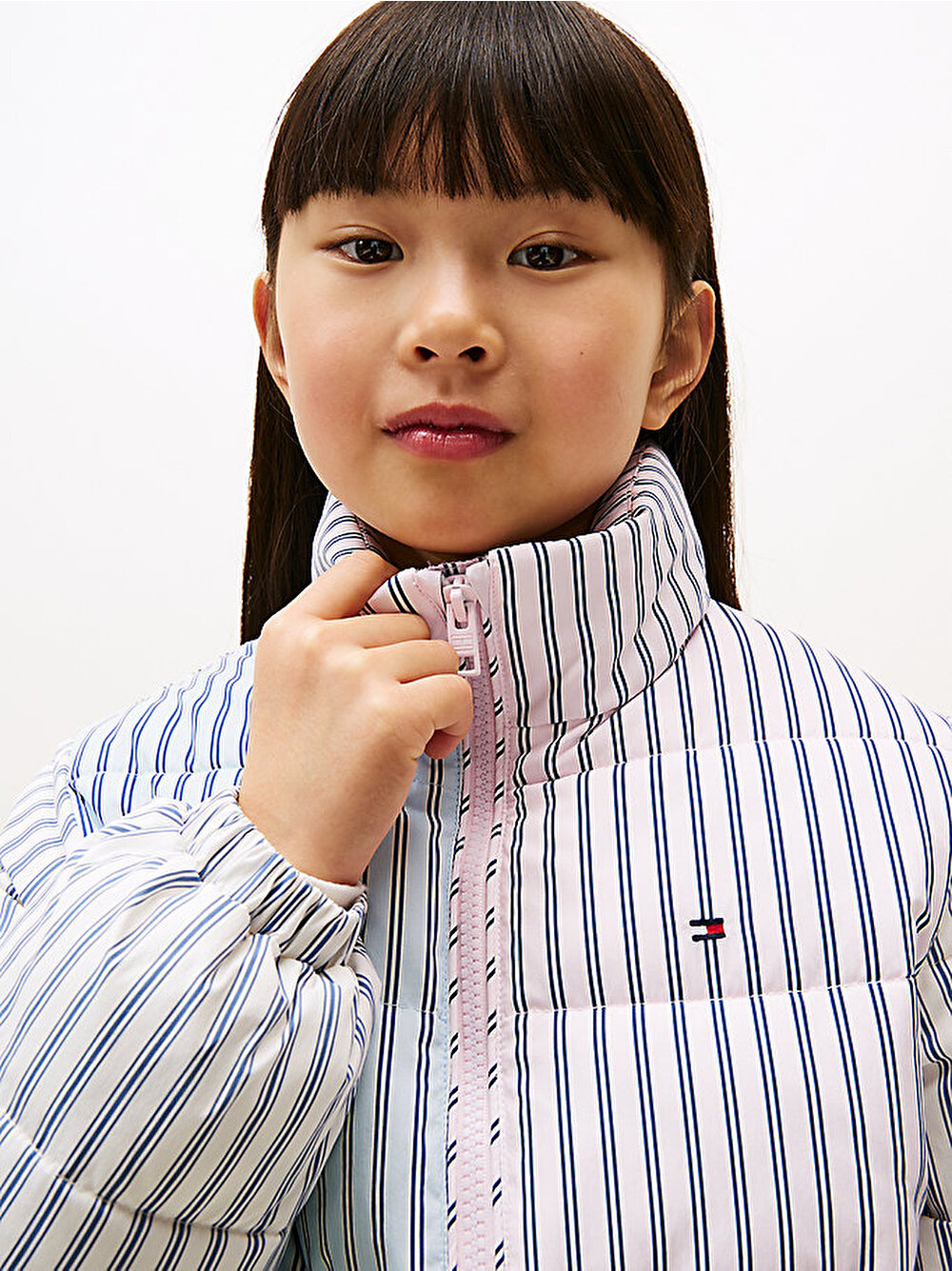 kız çocuk mix stripe puffer ceket