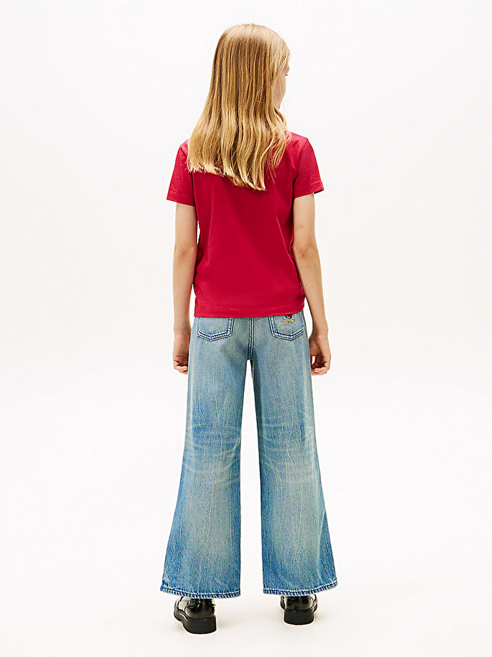 Bu saf pamuklu jarse tişört, günlük hayata ışıltılı bir dokunuş getiren taşlı bayrakla süslenmiştir.
