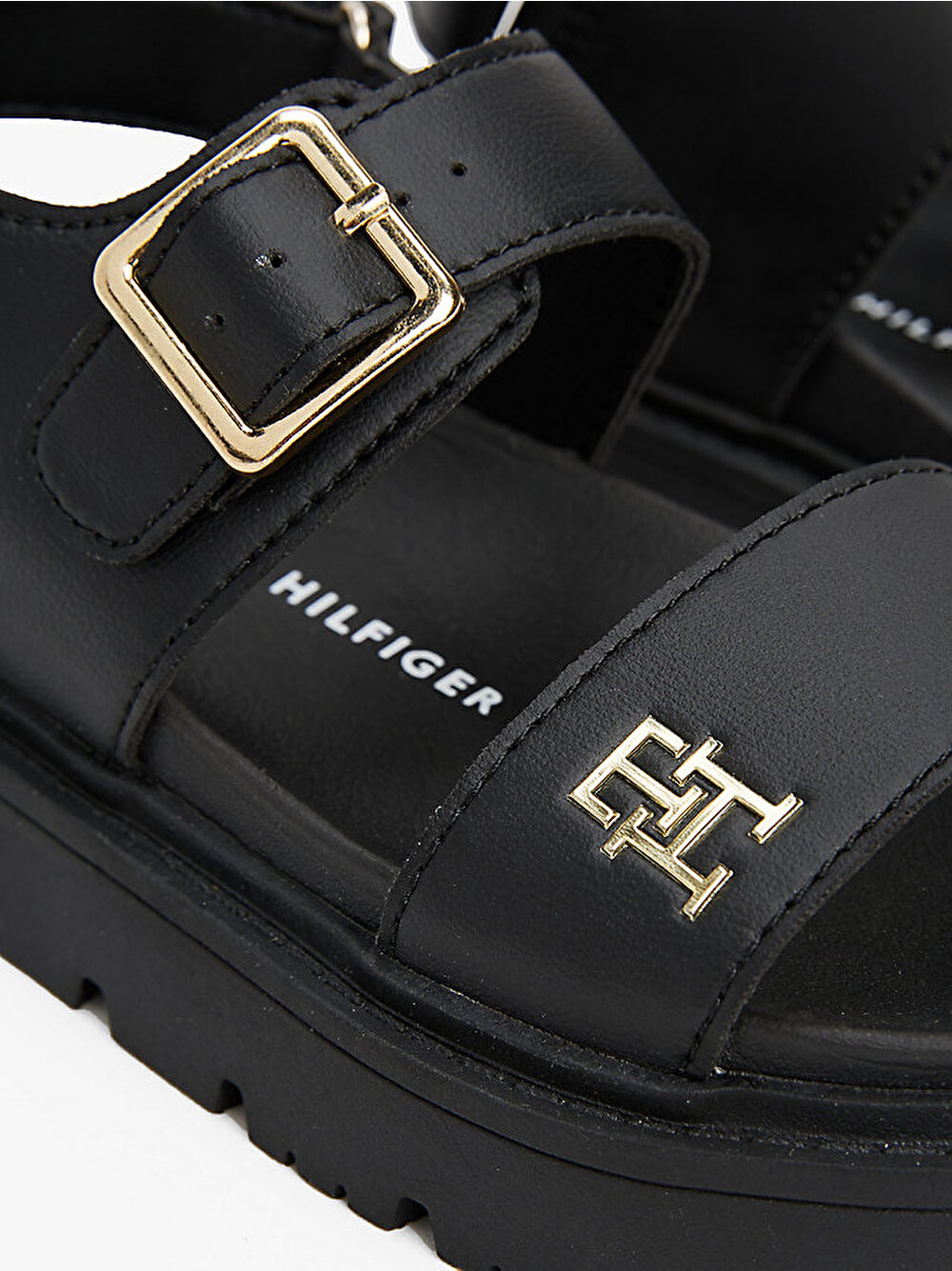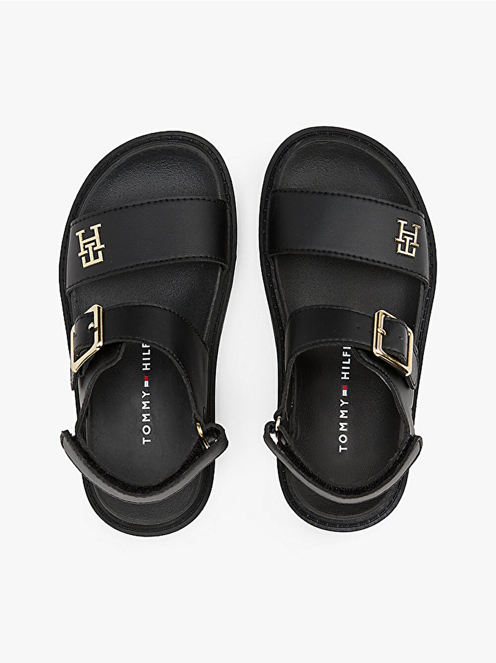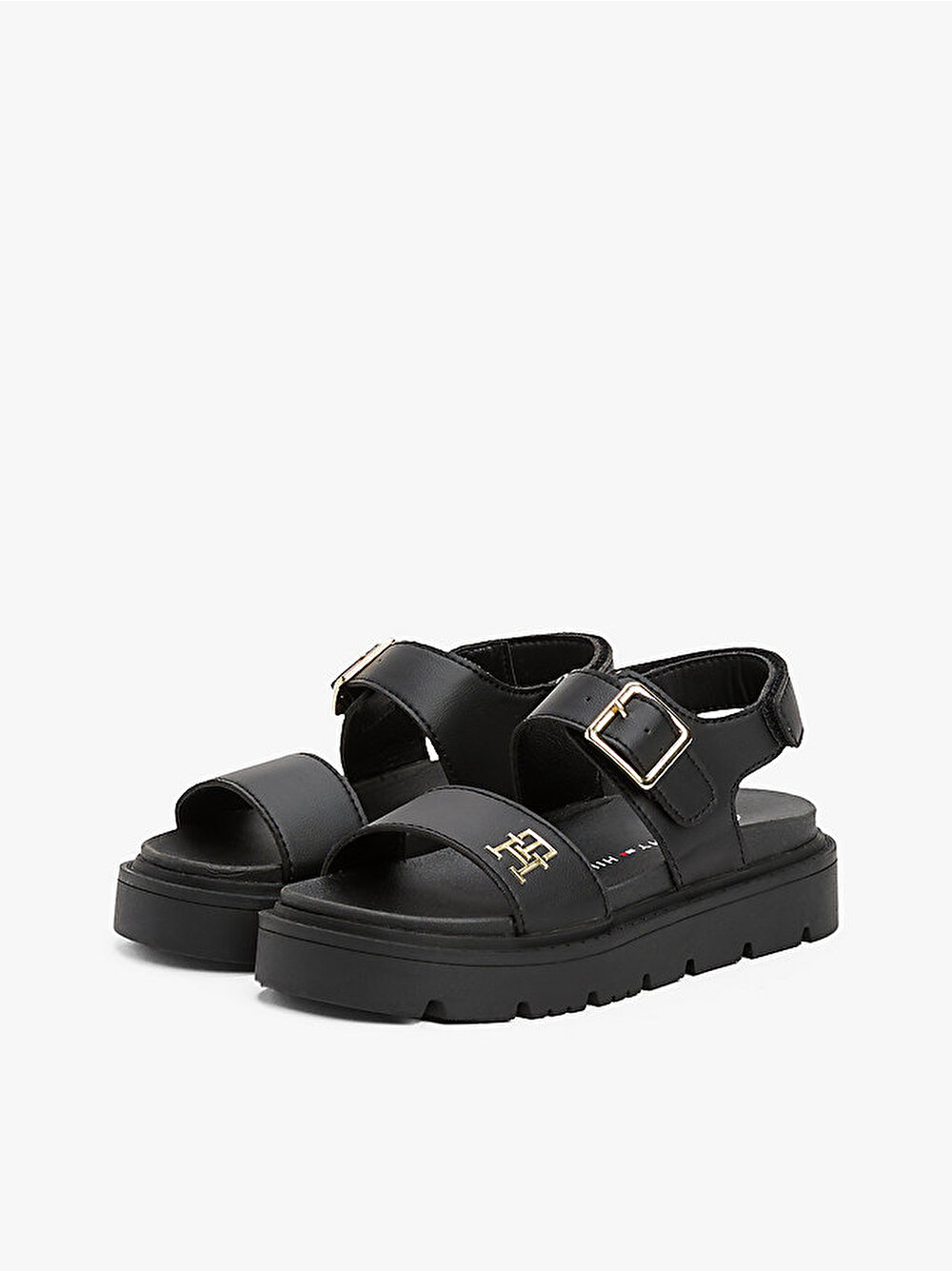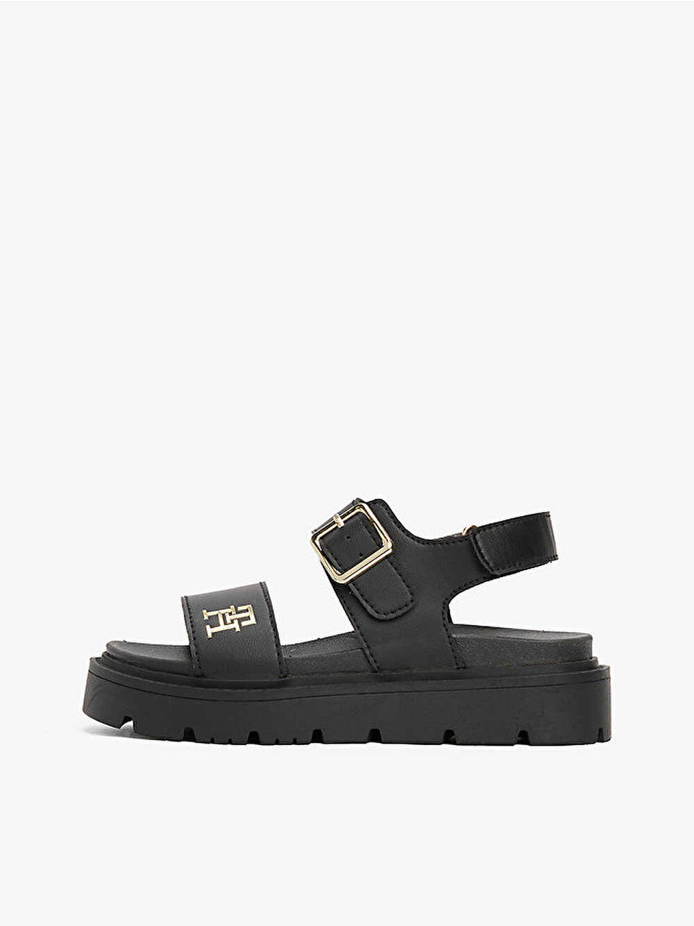 Altın tonlu aksesuarlar, ayarlanabilir bilek kayışı ve TH monogramlı plaka ile bu kalın tabanlı sandaletlere şıklık katıyor.