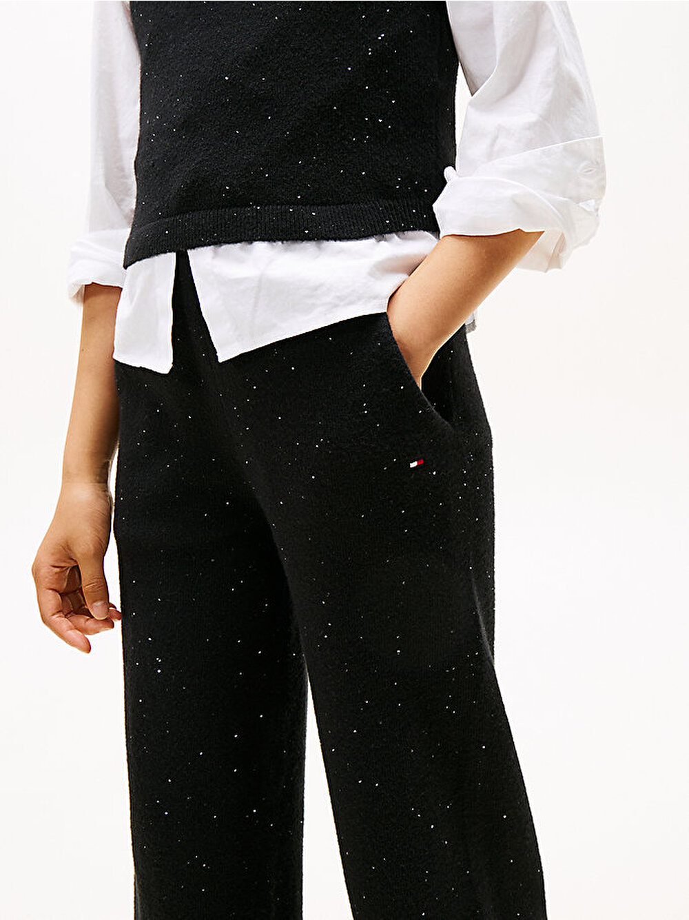 Bu wide leg büzgü ipli pantolon ışıltılı payetlerle dokunmuştur, bu da onları partiler ve özel günler için tercih edilen bir seçim haline getirir.